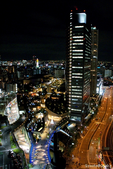 從飯店看難波CITY(左下方的平面式商城)與難波PARK(右方的大樓),還能看到大阪的「通天閣」哦!
