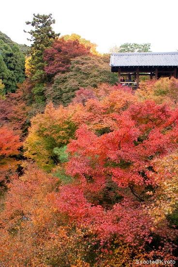 在東福寺能看到許多凌駕於楓紅之上的景致,我想這應該是東福寺賞楓最大的特色之一吧!