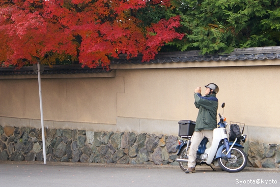 看到這搶眼的楓紅,路過的機車騎士也忍不住停下來拍一下。