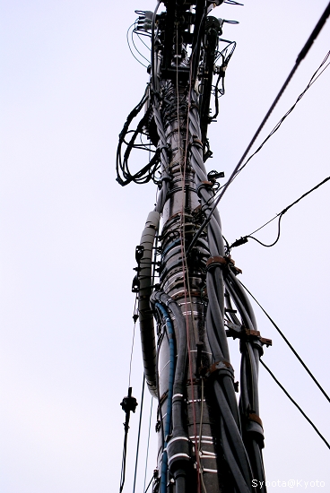 在沒有電線地下化的巷弄裡還能看到台灣隨處可見的電線桿,不過…這根電線桿上的電線也太多了一點吧!